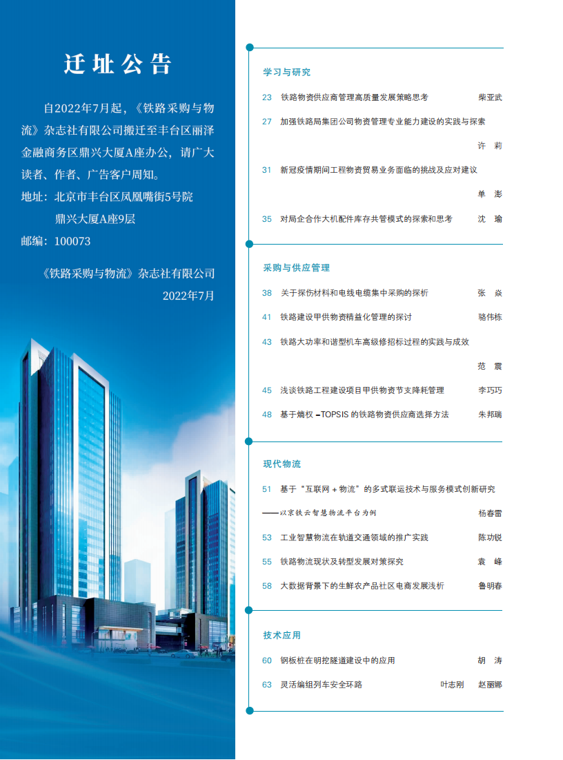上一篇: 《铁路采购与物流》2022年06月 总第189期