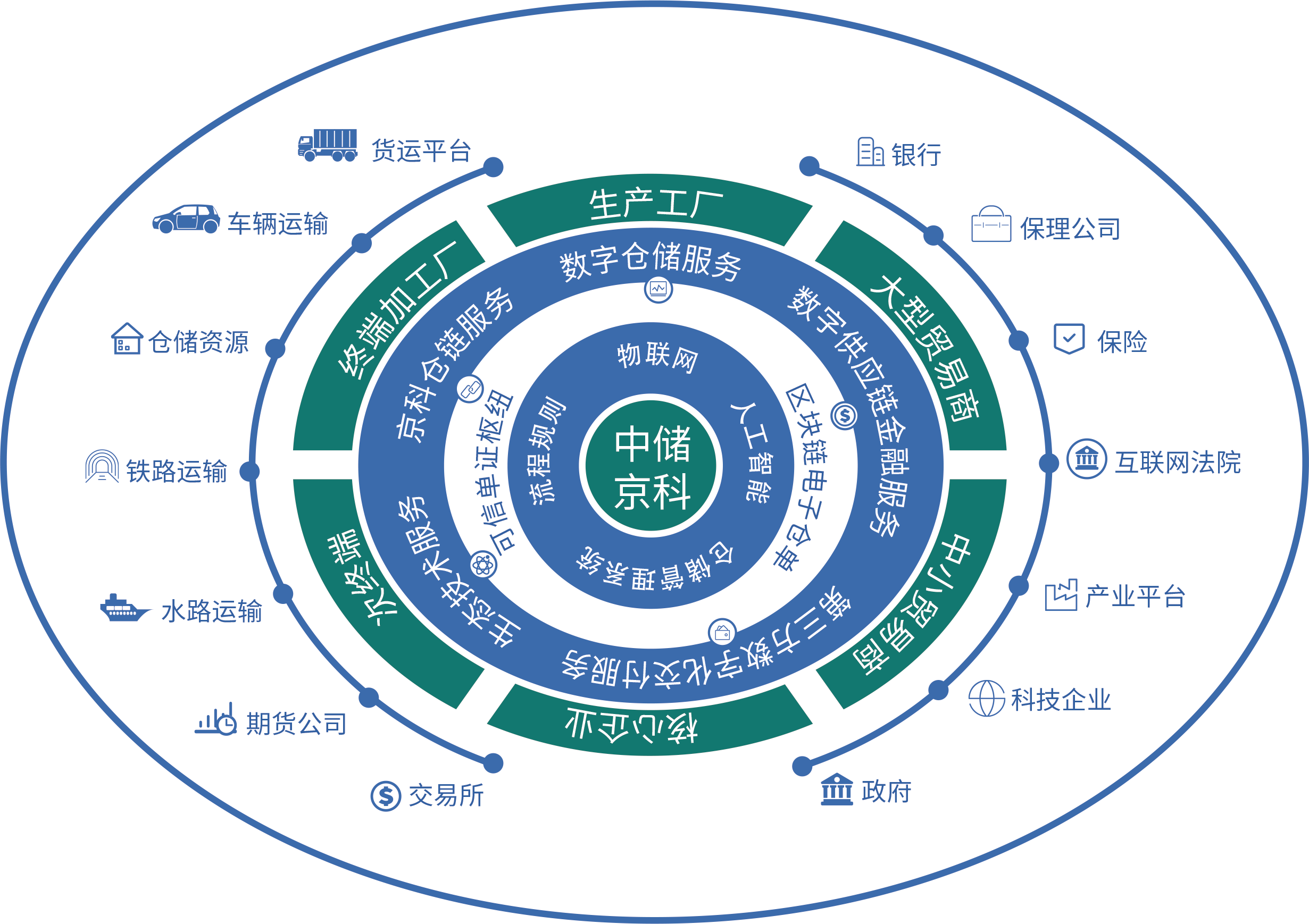 集团所属中储京科供应链管理有限公司。自主研发的货兑宝平台和京科仓链平台,并提出了智库云、仓单云、交货云、融资云、协同云“五朵云”的服务理念,构建大宗商品供应链协同服务平台。为大宗商品现代流通体系建设,提供数字化仓库网络、区块链仓单系统、第三方数字化交付平台、数字供应链金融、大宗商品全国统一大市场软件基础设施建设等共生、共享、共创的解决方案服务。公司被选为国家区块链创新应用试点企业,并获得国际供应链管理专业协会“CSCMP2020 供应链创新案例奖项”、中国产业区块链企业50强等多项殊荣。